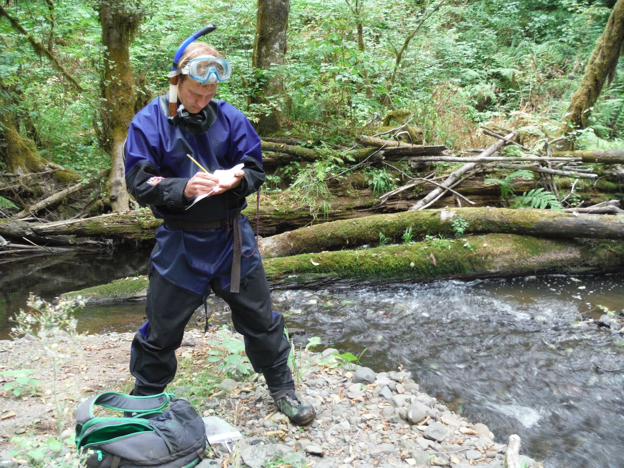 Mike has been snorkeling with Bio-Surveys for 20 years and has co-authored several RBA reports. He’s been studying Oregon salmon habitat in the central and northern Coast Range since the summer of 2000. He specializes in snorkel surveys, riparian restoration, and aquatic habitat inventories.